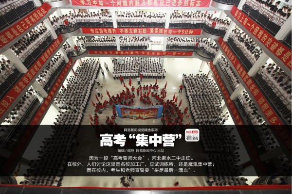 因?yàn)橐欢巍案呖际膸煷髸?huì)”,河北衡水二中走紅。在校外,人們討論這里是名校加工廠,應(yīng)試訓(xùn)練所,還是魔鬼集中營。而在校內(nèi),考生和老師宣誓要“拼盡最后一滴血”。編輯/聞烜