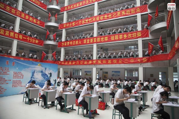 央視主持人白巖松驚呼,這是一所“成批成批的像韭菜一樣批發(fā)生產(chǎn)狀元的學(xué)校”。在學(xué)生中,也流傳著“超級(jí)高考工廠”、“神一樣的學(xué)?!钡日f法,也正是這聲勢浩大的“高考最強(qiáng)軍團(tuán)”,吸引著周邊越來越多的學(xué)生和家長來“投奔”。