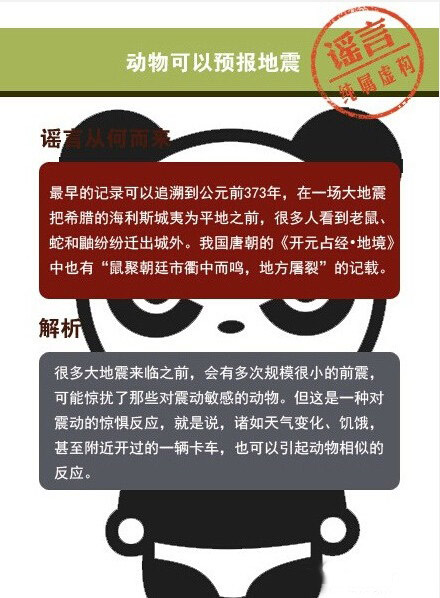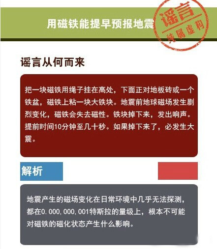 動物、磁鐵可以預(yù)報地震、地震生命金三角可救命、土豆促進身體康復(fù)、淋涼水可以復(fù)活假死人……這些曾經(jīng)轉(zhuǎn)發(fā)過萬的“常識”都是謠言!