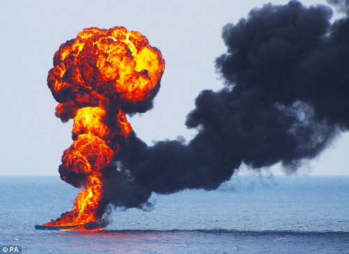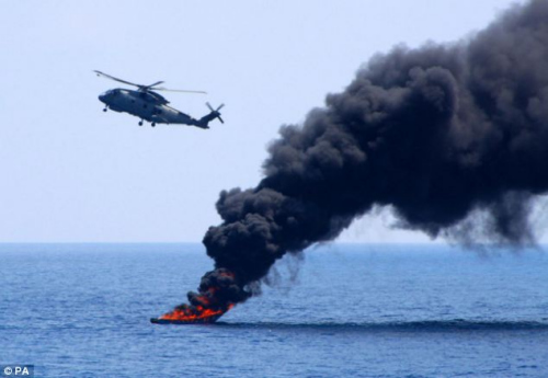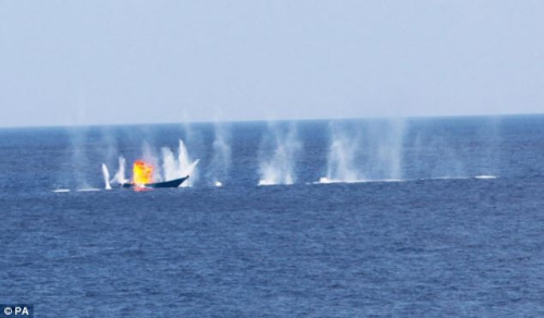 英國(guó)艦載機(jī)掃射海盜船景象壯觀 現(xiàn)場(chǎng)燃大火