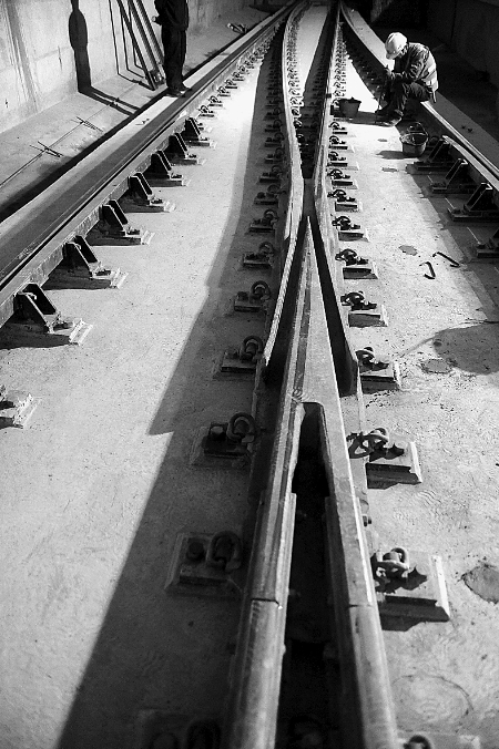 上圖 鄭州地鐵1號(hào)線中原東路站暗挖區(qū)間的整體道床(4月16日攝)。