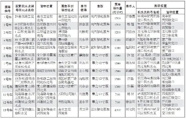 移動泵車防汛區(qū)域分布一覽表
