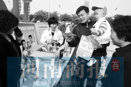 昨天,鄭州市綠城廣場上,疾控工作人員向市民發(fā)放疫苗接種宣傳冊