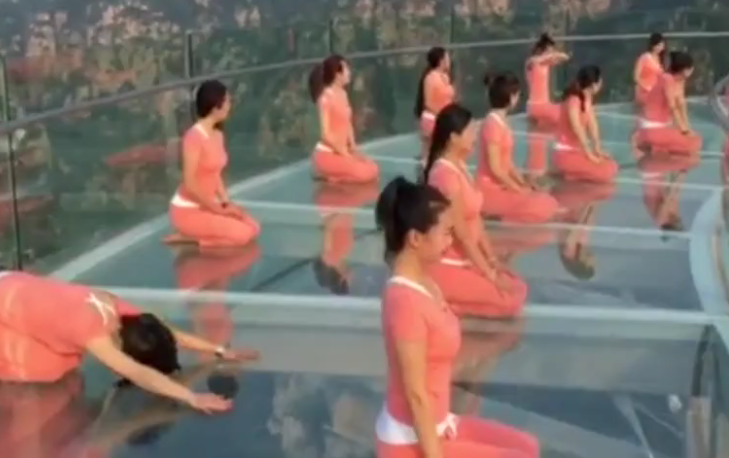 • 實(shí)拍百人懸空玻璃觀景臺(tái)上練瑜伽