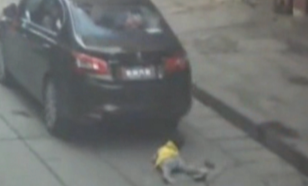 幼童過馬路竟被圈入車底