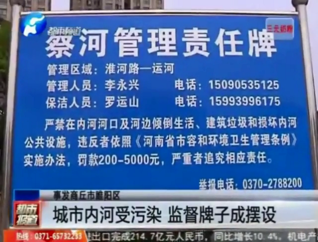 • 城市內(nèi)河污染 監(jiān)督牌子成擺設