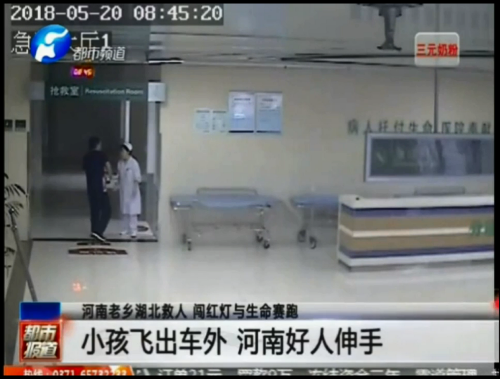 • 小孩飛出車外 河南好人伸手
