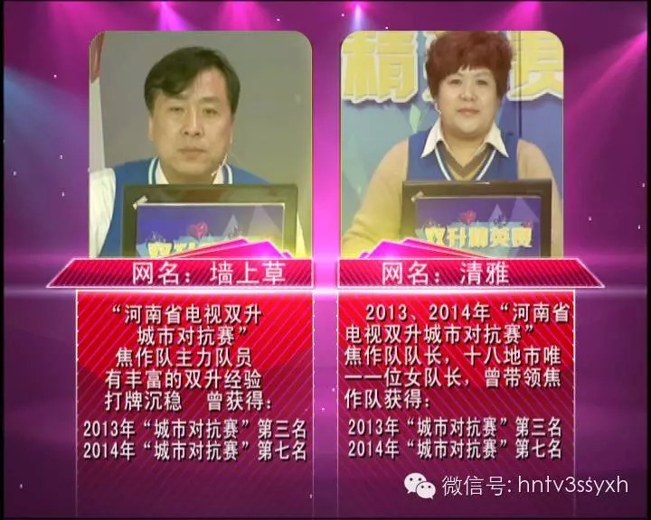 從今晚開(kāi)始我們雙升特別節(jié)目就告一段落了!仍將進(jìn)行的是2015年雙升精英賽上半?yún)^(qū)第6輪敗者組的第1場(chǎng)比賽,是由鄭東精英“低碳生活”和“雪域高原”對(duì)陣焦作精英“清雅”和“墻上草”。