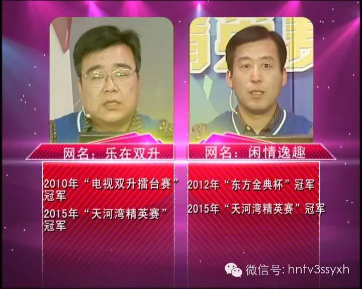 “樂在雙升”和“閑情逸趣”是一對(duì)老搭檔,城市對(duì)抗賽冠軍開封隊(duì)主力隊(duì)員,兩人搭檔曾獲得2015年天河灣精英賽冠軍?!伴e情逸趣”曾獲得2012年東方金典杯冠軍,“樂在雙升”曾獲得2010年電視雙升擂臺(tái)賽冠軍。