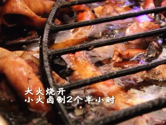 還有啥大料?這可是個秘密,據(jù)說這秘方可是他家獨有的,俗話說細節(jié)決定成敗,鹵料下鍋也要充分注意小細節(jié),肉皮朝下才能保證煮透并入味,上面還要蓋上鐵篦子和長石條,保證肉類能充分浸泡在老湯中。