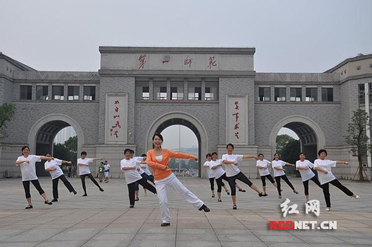 紅網(wǎng)長(zhǎng)沙訊(記者廖潔)沒(méi)有吵鬧的音樂(lè),動(dòng)作優(yōu)雅舒展,6月13日傍晚,在湖南第一師范學(xué)院前坪,中老年教師們練習(xí)的一種特別的廣場(chǎng)舞十分引人注目。