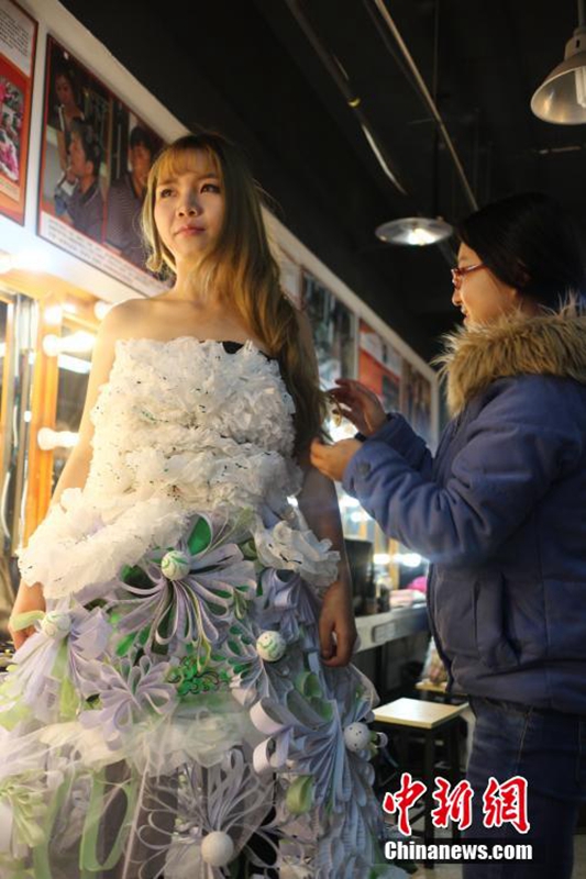 創(chuàng)意又環(huán)保 成都大學(xué)生用廢紙做婚紗