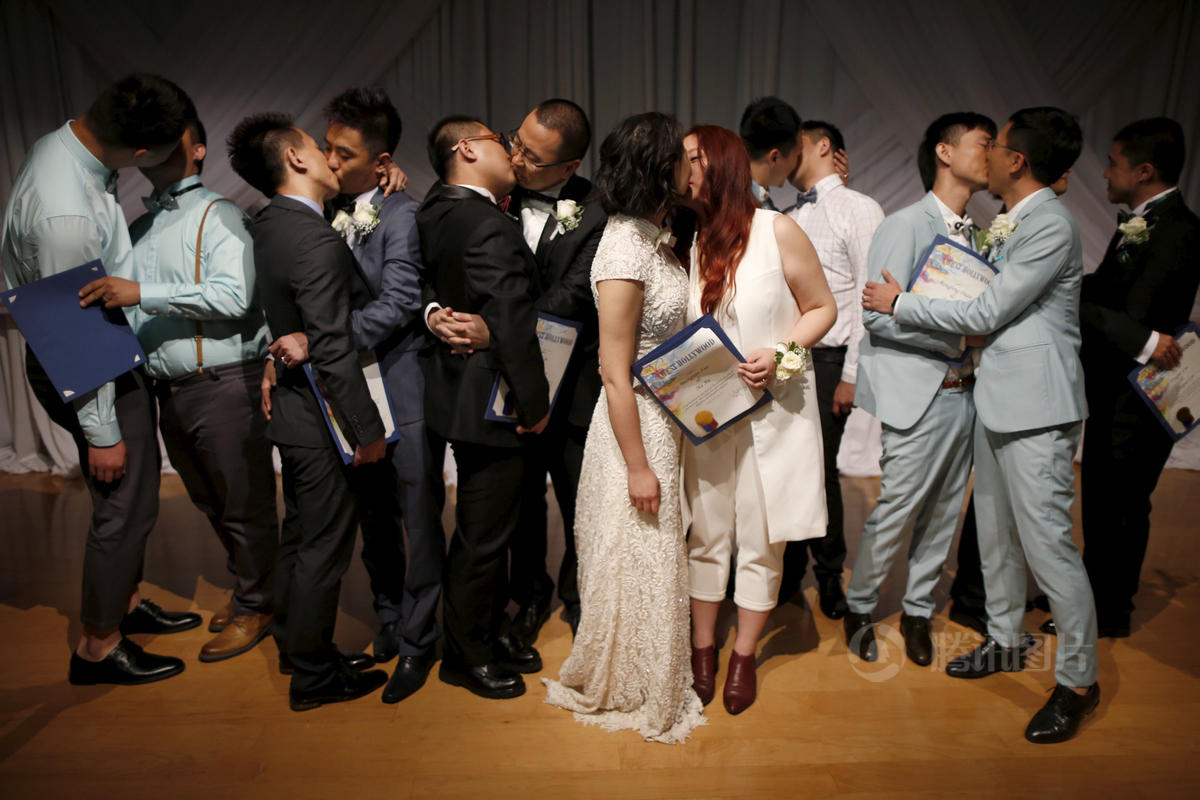 6月9日,美國加州洛杉磯,七對來自中國的同性戀情侶舉行集體婚禮,婚禮儀式由中國大陸一家互聯(lián)網(wǎng)巨頭資助。加州是美國同性戀婚姻合法的30個(gè)州之一,婚禮費(fèi)用均由贊助企業(yè)承擔(dān)。