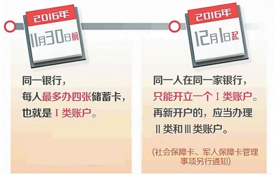 12月起銀行賬戶實(shí)行分類管理 同一銀行只能辦一張借記卡