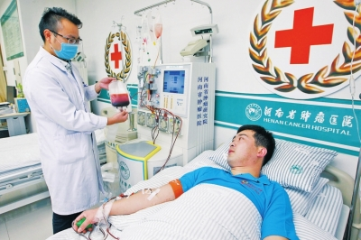 “上午8點(diǎn)半開始采集,3個小時順利結(jié)束?!弊蛱焐衔?,來自焦作沁陽的33歲退伍兵張國強(qiáng),在河南省腫瘤醫(yī)院造血干細(xì)胞采集室成功捐獻(xiàn)造血干細(xì)胞混懸液194毫升。
